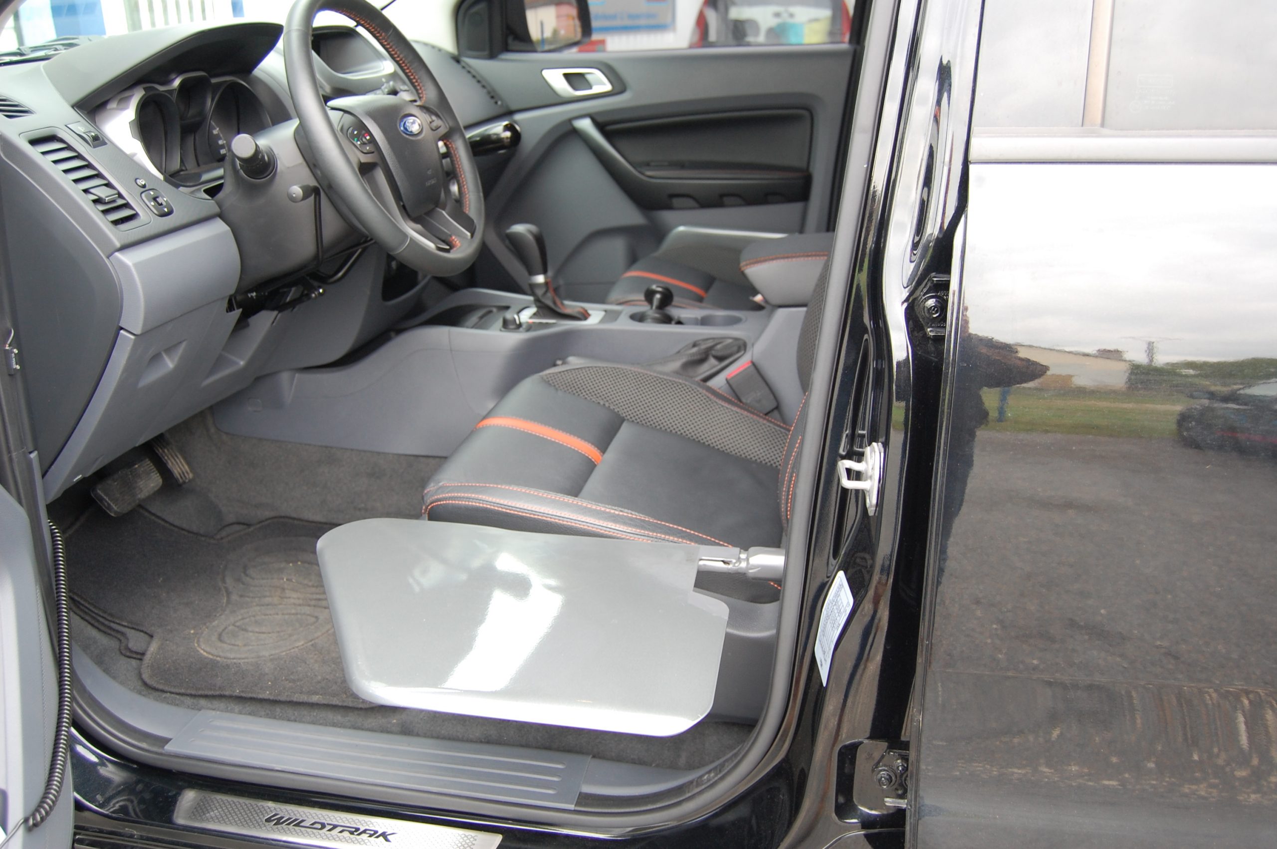 Cet aménagement véhicule a été conçu pour combler le vide entre le siège du véhicule et le fauteuil roulant.
